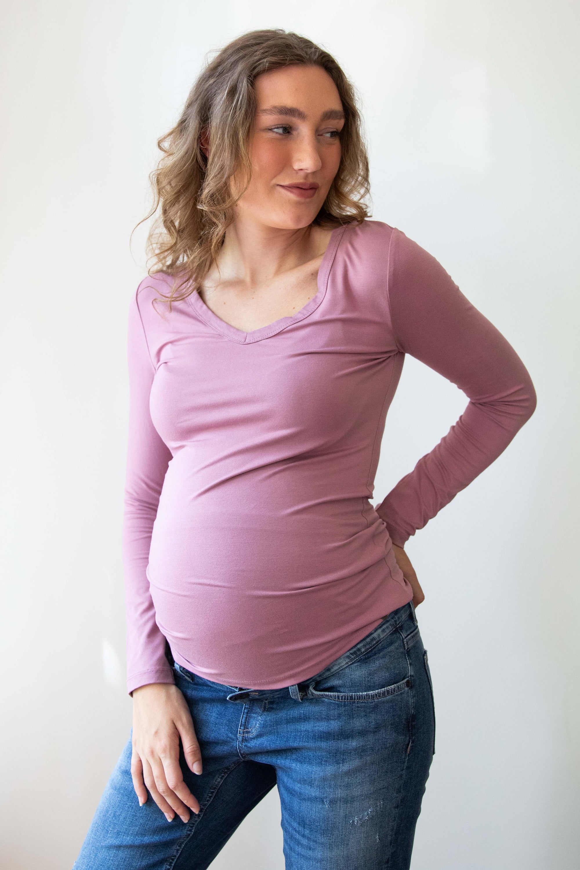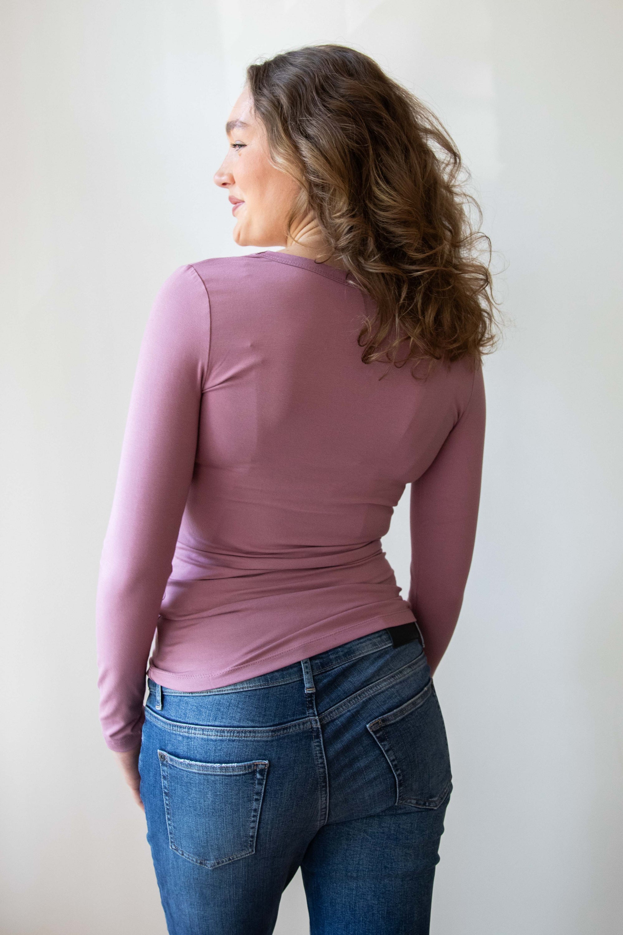 Shirt V-neck l.sl Ecovero | Plum